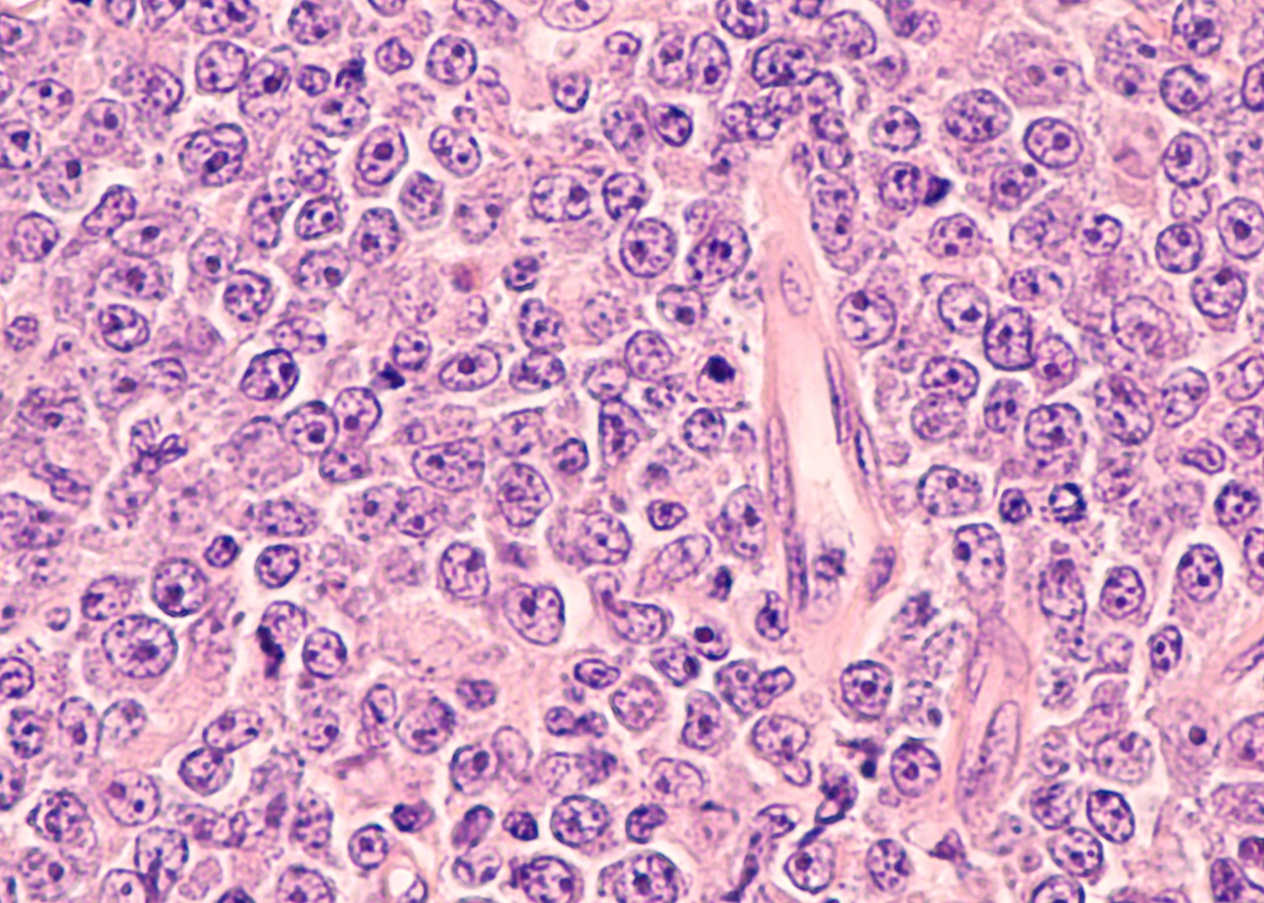 Lymph node biopsy. A pathologist examines a sample of tissue from a lymph node for signs of cancerous cells.